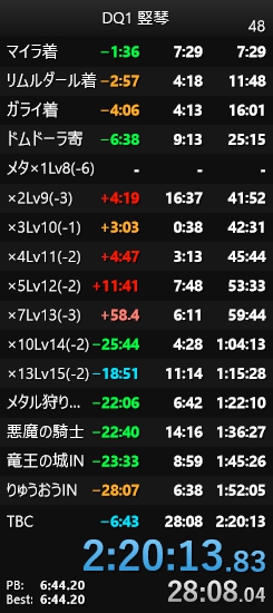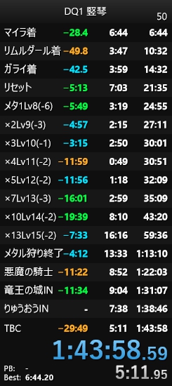 7回目の通し【1:38:51】(ゴーレム前乙、竜王城1乙)※自己ベスト更新 - 第7回(/)