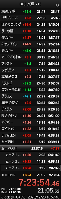 - DQRTAツアー2025[12月1本目](12/28) 58回目の通し【7:23:54】