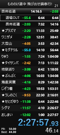 前回自己ベスト(2:37:17)だったが、あと1戦でうしのこく稼ぎ終了の場面でひとだまが倒され涙の+4分を喫してしまい、リベンジを誓って望んでいた。